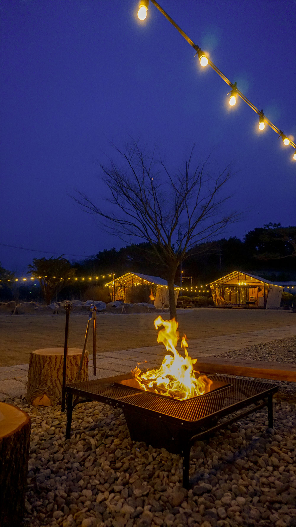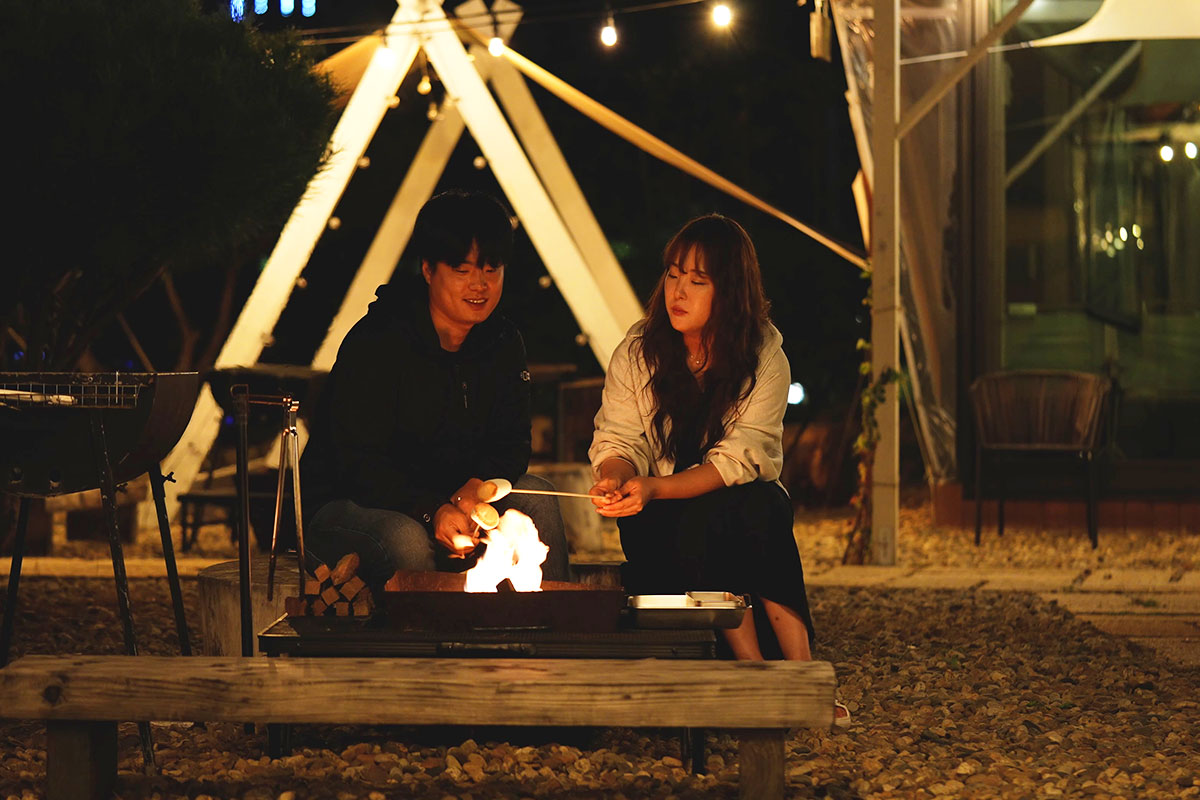 고요한 밤, 타닥타닥 타오르는 모닥불 앞에 앉아 온전한 휴식을 누려보세요. 춤추는 불꽃을 바라보며 나누는 진솔한 대화와 달콤하게 구워진 마시멜로 한 입이 글램핑의 밤을 더욱 따뜻하고 특별하게 만들어 줍니다.